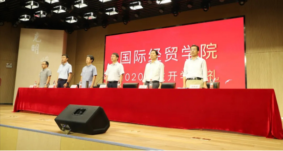 2020级新生开学典礼在圣井校区文化活动中心多功能厅举行。开学典礼由学院党委副书记郝秀峰主持,院长王培志、副院长朱庆华、王庭东、刘伟全以及教师代表赵明亮等参加了典礼。