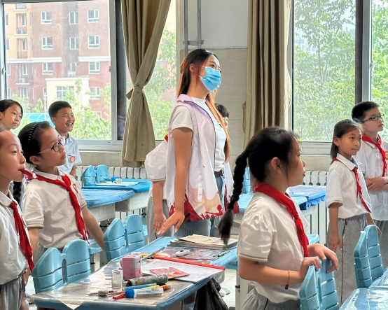 组织学生志愿者走进济南市高新区黄金谷小学进行志愿服务活动。
