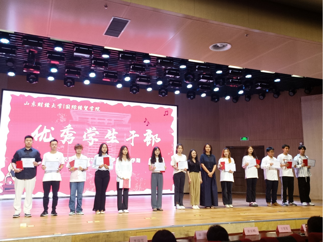 紧接着,蒋静老师、王思远老师为王钰骏等学生会优秀学生干部颁奖,肯定了他们为学院学生活动的付出;李瑞雪老师、李亚莉老师为优秀学生干部邹庚岳、于喆等同学颁奖。