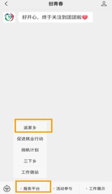 微信关注“创青春”公众号,在服务平台中选择“返家乡”。