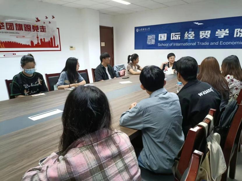 国际经济系教工党支部教师赵晓斐与22级、23级的名学生参与互动。
