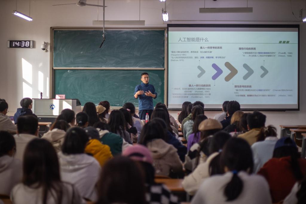 郭继东的讲座用一个个鲜活的案例,普及了人工智能技术的基本知识和应用,将同学们引入人工智能的殿堂,引发同学们思考如何有效地利用人工智能促进自身发展。本次讲座是学院助力建设新文科教育人才培养体系,推动学科交叉融合发展的系列活动之一,学院将在日后的工作中继续探索和开展数字化与专业知识深度融合的学生活动,打通第一二课堂学习,助力学生全面发展成长成才。