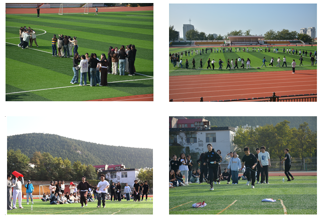 在舜耕校区体育场举办“研动青春,趣满国贸”研究生趣味运动会。党委副书记王斐斐老师、研究生辅导员李瑞雪老师与2024级全体研究生新生共同参加此次活动。