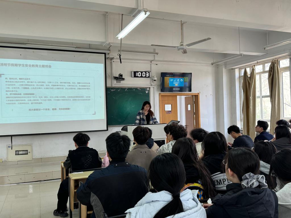 主题班会围绕清明节假期安全问题,重点包含防溺水、防交通事故、防出游风险、防火灾、防诈骗、防自然灾害等内容。班会上,辅导员教育学生要自觉遵纪守法,遵守社会道德规范;要注意人身财产安全,防范电信诈骗,防止进入传销窝点;要遵守交通规则,注意饮食安全与卫生,严禁酗酒滋事。同时强调,无论是留校还是离校,同学们都要保持通讯畅通,各班要坚决落实好离返校情况统计工作。并提醒离校学生要按时返校,留校学生要严格遵守学校各项管理规定,注意消防安全,合理规划时间,确保度过一个安全、愉快的假期。