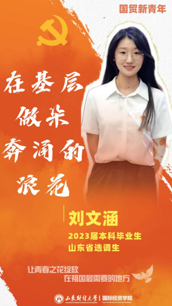 贸易经济专业2023届本科毕业生,山东省选调生。曾获山东省优秀毕业生、第十七届“挑战杯”山东省大学生课外学术科技作品竞赛三等奖、山东省大中专学生志愿者暑期“三下乡”社会实践活动优秀学生、海角视频