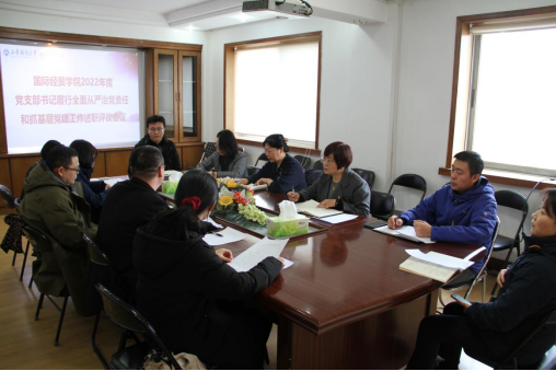 党委在舜耕校区办公楼508召开2022年度党支部书记履行全面从严治党责任和抓基层党建工作述职评议会。党委班子全体成员及各党支部书记出席会议,会议由党委书记崔东峰主持。