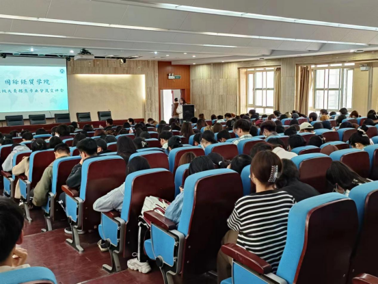 接着,王涛老师介绍了本次专业分流所包含的国际经济与贸易、国际商务、贸易经济三个专业的基本情况,并对各专业的特色课程、就业方向、发展空间进行了详细解读。王涛老师通过专业对比分析、列举往年数据、互动答疑解惑等方式,深入浅出地解答了同学们学科内容、培养方式、就业去向、考研专业等方面的疑惑。