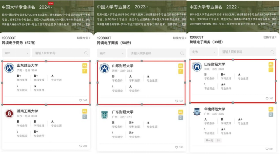 跨境电子商务专业和国际经济发展与合作专业在全国专业排名中位列第一,专业评级均为A+,其中跨境电子商务专业是连续第三年在软科全国大学专业排名中第一,标志着海角视频