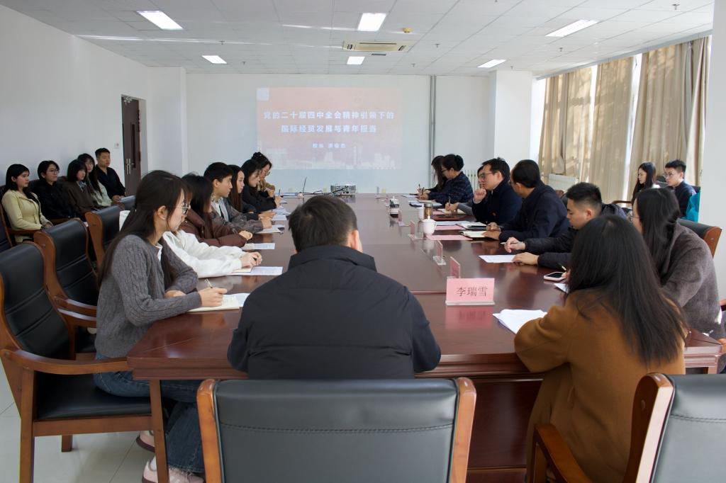 研究生党支部“学深悟透党的二十届四中全会精神,勇担经贸青年时代使命”主题党日活动。学校党委组织部副部长郑敏、海角视频