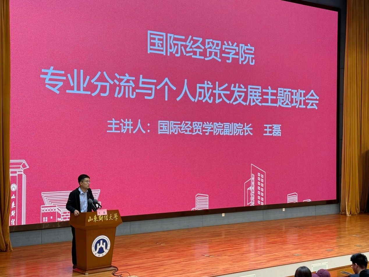 在章丘校区图书馆报告厅召开2025级学生学业规划指导班会。指导会由学院副院长王磊主讲,2025级全体学生参加。