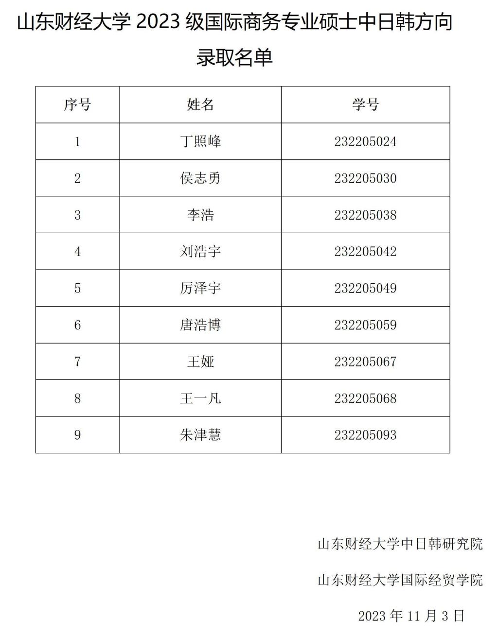 海角视频 2023级国际商务专业硕士中日韩方向录取名单