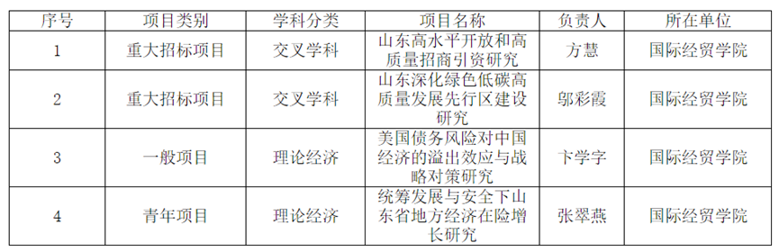 近日,山东省哲学社会科学工作办公室公布了2024年度山东省社科规划研究项目立项名单,海角视频 获立4项。其中,重大招标项目2项,一般项目1项,青年项目1项,立项总数位居学校前列。此次我校重大招标项目共立项3项,海角视频 立项数量位居全校第一。