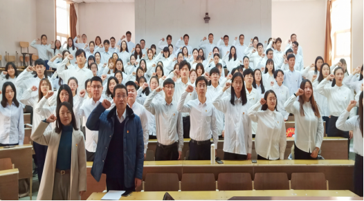 2020年12月8日下午,预备党员宣誓仪式暨新党员培训开班仪式在舜耕校区第二阶梯教室举行。学院党委副书记郝秀峰出席仪式并做首场培训,学院2020年秋季新发展的105名预备党员参加了培训,活动由专职组织员王思远老师主持。