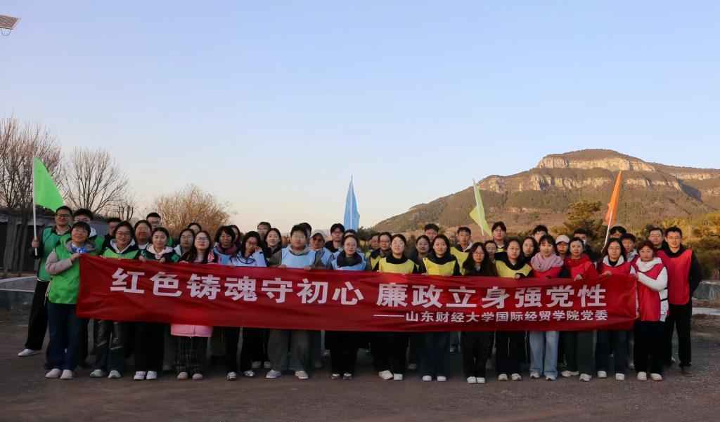 为深入学习贯彻落实党的二十届四中全会精神传承红色基因、锤炼坚强党性,11月27日,国际经贸学院党委组织50余名师生党员代表赴大峰山党性教育基地,开展“红色铸魂守初心,廉政立身强党性”为主题的党性教育活动